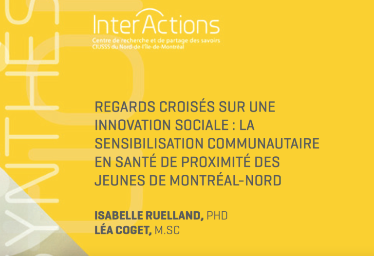 Isabelle Ruelland et Léa Coget Les objectifs de la collaboration de recherche vise 3 objectifs à savoir : 1 ) Décrire la collaboration intersectorielle entre les partenaires du projet. Examiner les trajectoires des collaborations intersectorielles créées. Quels risques ont été pris ? Quelles innovations collaboratives ont été construites ? 2 ) Décrire les pratiques mises en place ainsi … Lire la suite de Regards croisés sur une innovation sociale : la sensibilisation communautaire en santé de proximité des jeunes de Montréal-Nord